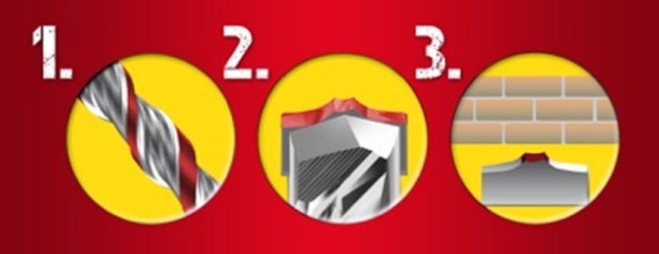 Het unieke en innovatieve spiraalontwerp van de REX® hamerboor, ook wel T-REX genoemd, maakt het eenvoudig om snel gaten te boren in o.a. steen, (gewapend) beton, graniet, marmer of andere harde ondergronden. Deze tweesnijder is voorzien van een ingesoldeerde hardmetalen widiaplaat met unieke ‘beitelvormige snijvlakken.’ Het spiraalontwerp bestaat uit dunne en dikke spiralen die zorgen voor een snellere boormeelafvoer. De hardmetalen kop is voorzien van een centreerpunt wat ervoor zorgt dat de boor niet wegloopt bij het aanzetten. De T-REX boor heeft een langere levensduur in o.a. beton dan vergelijkbare boren en is voorzien van een PGM keurmerk. Tip: boor bij L1>300 mm ongeveer 150 mm voor met een kortere boor van gelijke diameter.