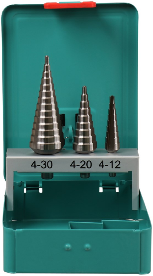 3-delige plaatborenset, in cassette.