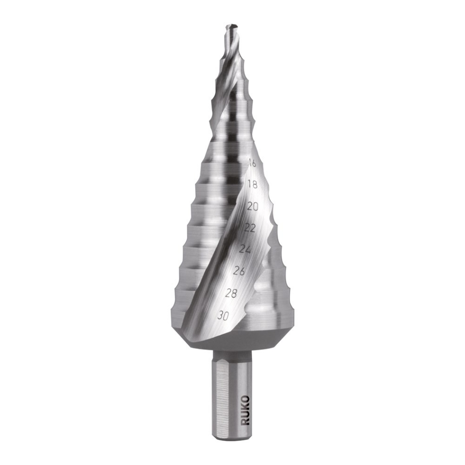 De ingeslepen spiraalvormige spaangroef biedt optimale looprust en een hoog snijvermogen. Vooral niet-brekende spanen worden net als bij een spiraalboor goed afgevoerd. Dit voorkomt de vorming van opbouwsnijkanten en koudlaspunten aan de sneden. De conische vorm vergemakkelijkt het terugtrekken bij doorboorde platen.