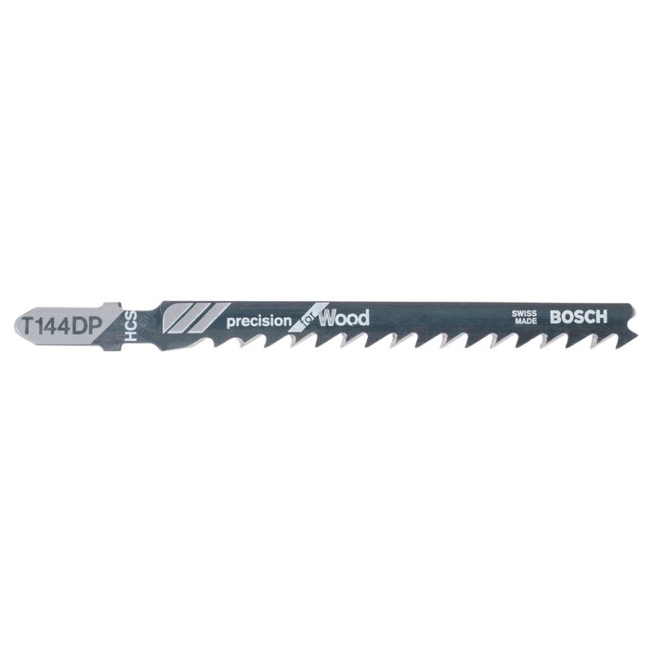 Het T 144 DP Precision for Wood decoupeerzaagblad biedt snelle, precieze en rechte zaagsneden in hout. De verhoogde bladdikte voorkomt buigen en zorgt voor precieze zaagsneden bij nauwkeurige hoeken. Bovendien zorgen de scherp geslepen, gezette tanden voor snelle zaagsneden. Het blad is gemaakt van koolstofstaal en geschikt voor het zagen in zachthout en niet-abrasieve houtbewerkingsmaterialen. Het blad is uitgerust met een grote tandafstand (4 mm) en zaagt door materialen van hout met een dikte van 5 - 50 mm.