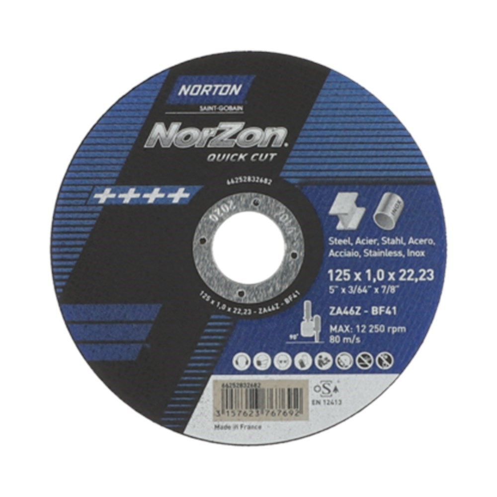 Norton Doorslijpschijf Vlak Norzon Quick Cut Inox ZA46Z T41/80 125x1.0x22