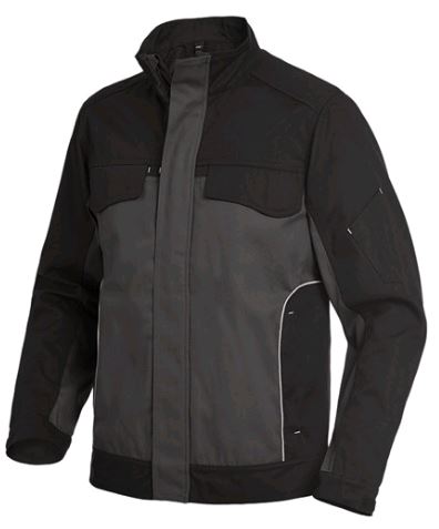 Dit TWILL-werkjack heeft 2 klepzakken met klittenband op de borst, 2 grote zijzakken met ritssluitingen, 2 binnenzakken, witte contraststrookjes voor het verstevigen van de zakhoeken, reflecterende strepen en de breedte van de kraag en manchetten kunnen worden aangepast.