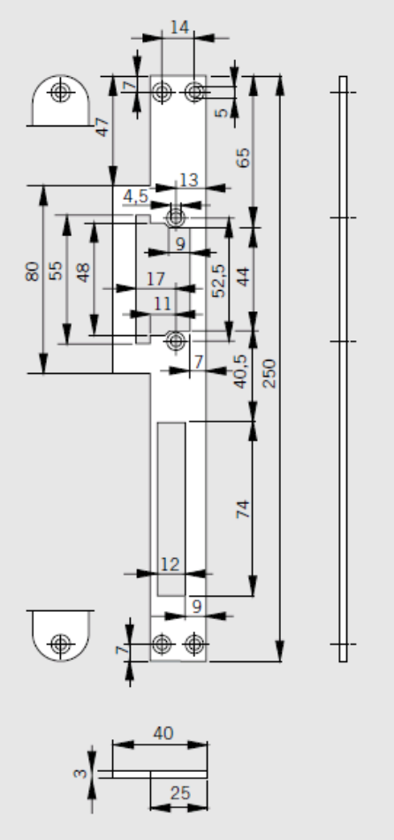 Dorma sluitplaat voor electrische deuropener flr25, afgerond