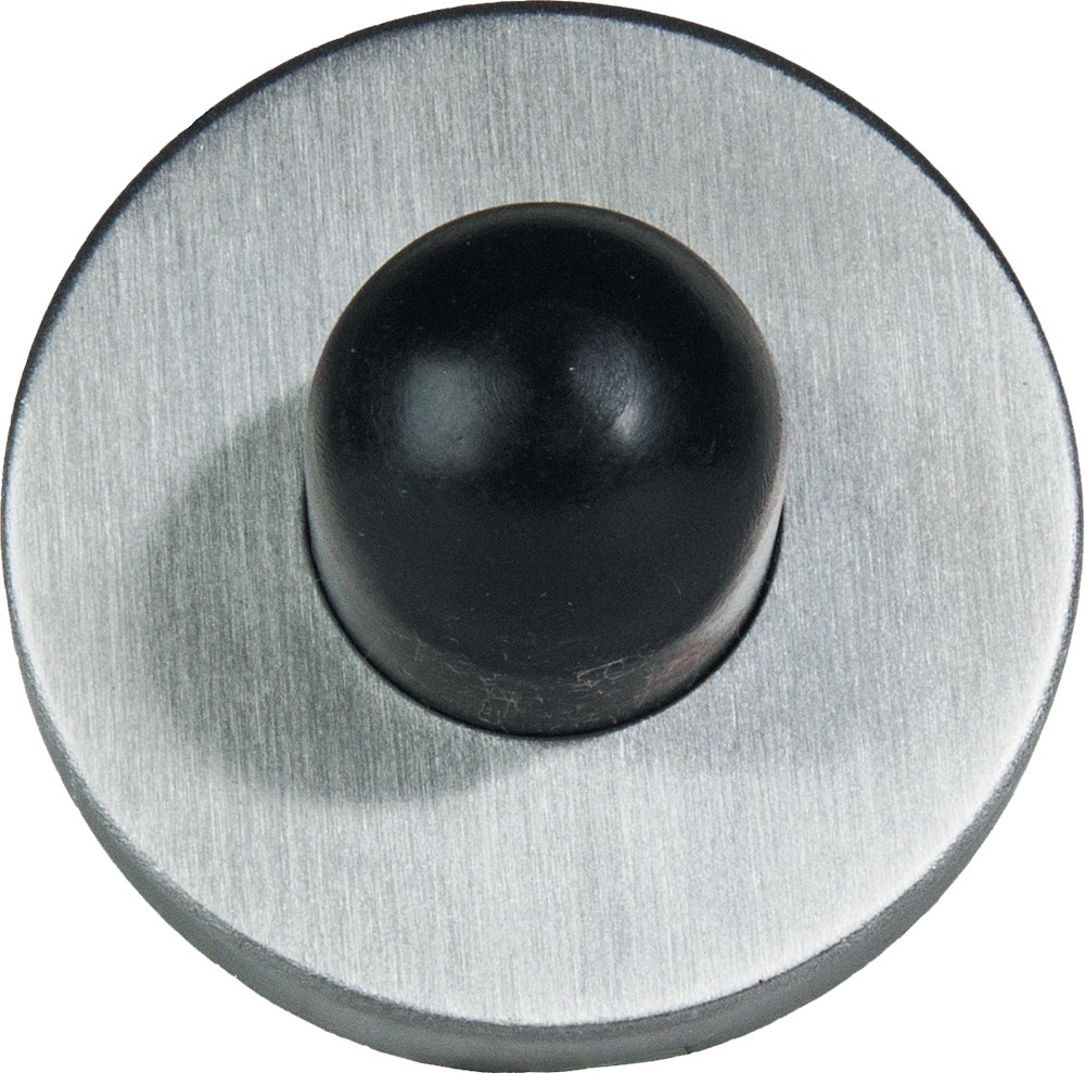 Rvs AISI 304 (A2), mat geborsteld. Met rozet, voorzien van zwart rubber buffer 22x30 mm. Geschikt voor wandmontage.