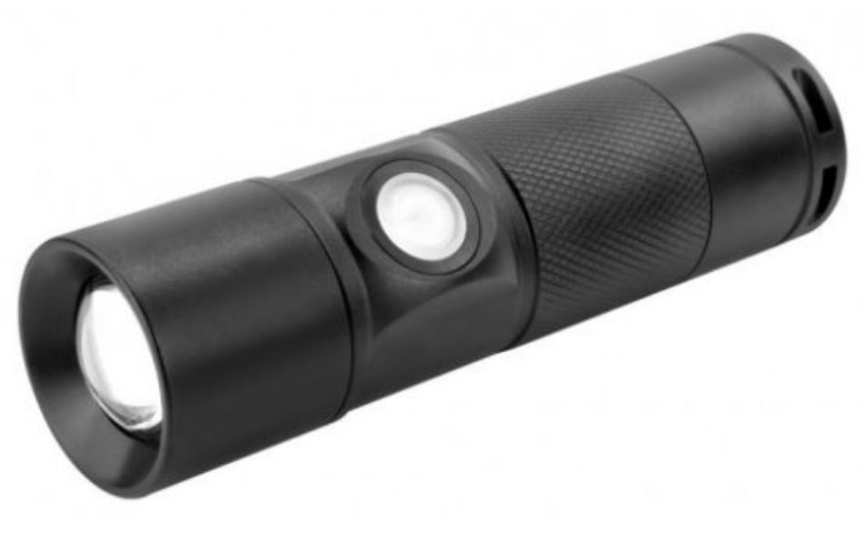 Professionele aluminium LED-zaklamp met geïntegreerde accu, 300 lumen, 4 lichtfuncties, oplaadbaar via ingebouwde USB-stekker.