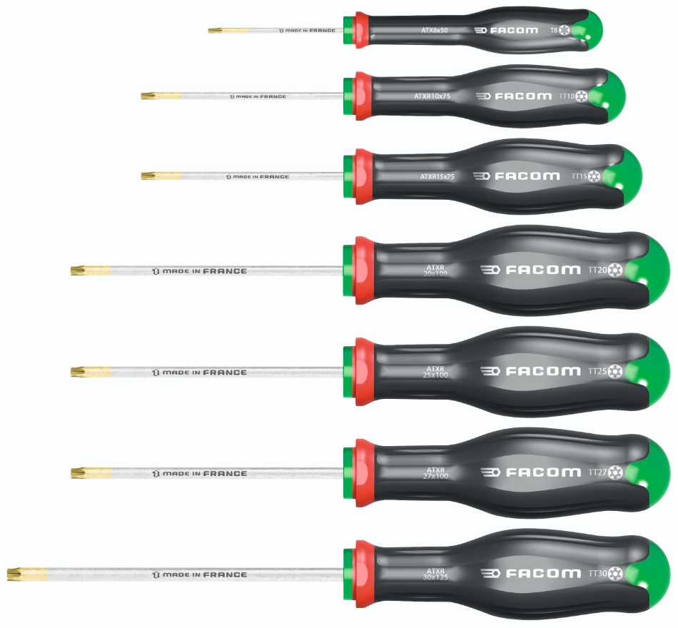 Inline thermische behandeling: + 100% levensduur en + 100% weerstandMateriaal van de handgreep: soft voor meer comfort en altijd bestendig tegen chemische productenTri-coating behandeling van het blad (Zink-Nikkel-Chroom) 4 keer beter bestendig tegen corrosieGeoptimaliseerde ergonomie van de handgreep + 10% hoger koppelLasermarkering: voor een grotere slijtvastheidAfwerking van de profielen door digitale bedieningbetere aanpassing van de schroef door de koppeloverdracht te verhogen en de slijtage te verminderen