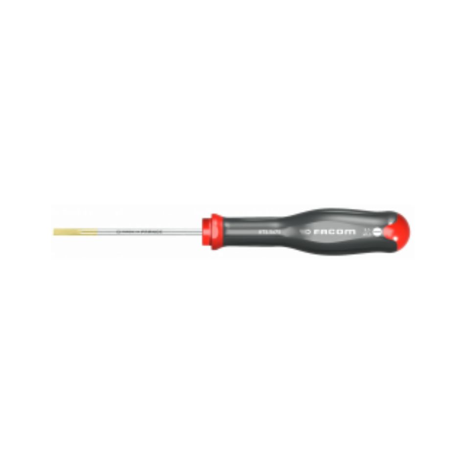 De cilindrische kling maakt diepliggende plaatsen toegankelijk. Extra lang bled tot 300 mm voor moeilijk bereikbare, diepliggende schroeven. Inline thermische behandeling: + 100% levensduur en + 100% weerstand. Materiaal van de handgreep: Soft Grip voor meer comfort en altijd bestendig tegen chemische producten. “Tri-coating” behandeling van het blad (Zink-Nikkel-Chroom): 4 keer beter bestendig tegen corrosie. Geoptimaliseerde ergonomie van de handgreep: + 10% hoger koppel. Lasermarkering: voor een grotere slijtvastheid. Afwerking van de profielen door digitale bediening: betere aanpassing van de schroef door de koppeloverdracht te verhogen en de slijtage te verminderen.