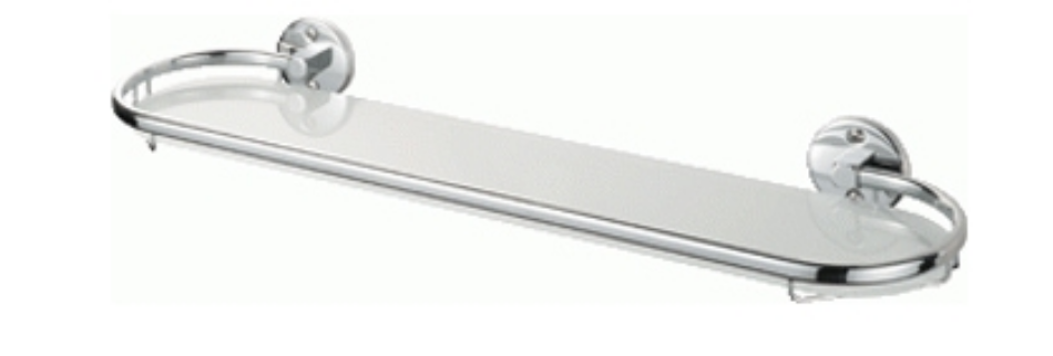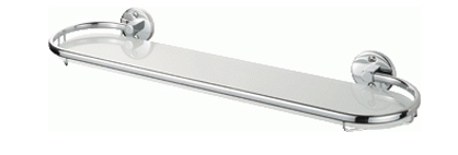 Glas, messing, kleur chroom, geleverd met bevestigingsmateriaal. Lengte 509 mm en diepte 128 mm.