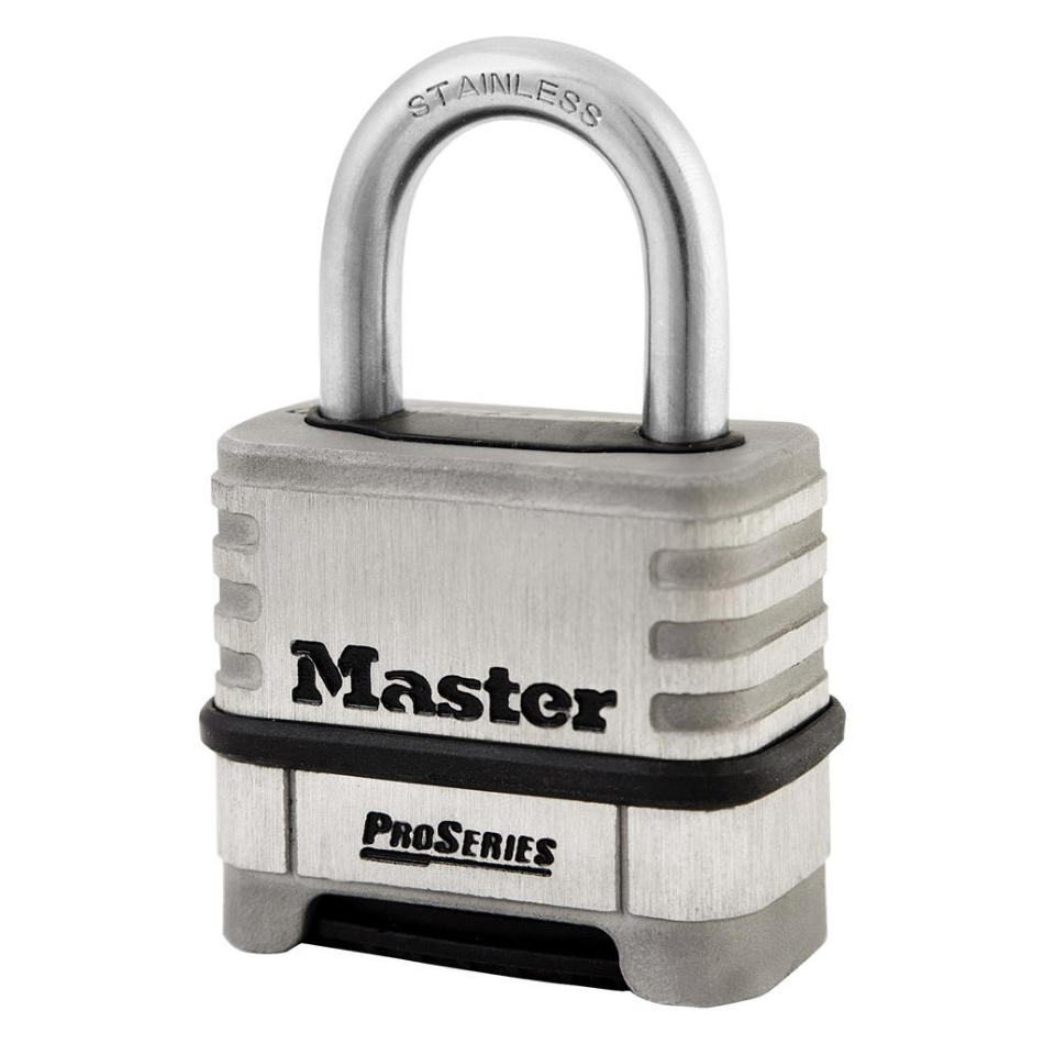 Het opnieuw in te stellen ProSeries®-hangslot Master Lock nr. 1174D is gemaakt voor commerciële/industriële toepassingen en heeft een 58 mm breed roestvrij stalen huis en een roestvrij stalen beugel met hoogte van 28 mm en diameter van 8 mm voor extreme corrosiebestendigheid. De zelf in te stellen combinatie biedt gemak en veiligheid met 10.000 mogelijke combinaties - er is geen tool voor opnieuw instellen vereist - en een nachtslotmechanisme beschermt tegen insteken, shimming en rappe aanvallen.