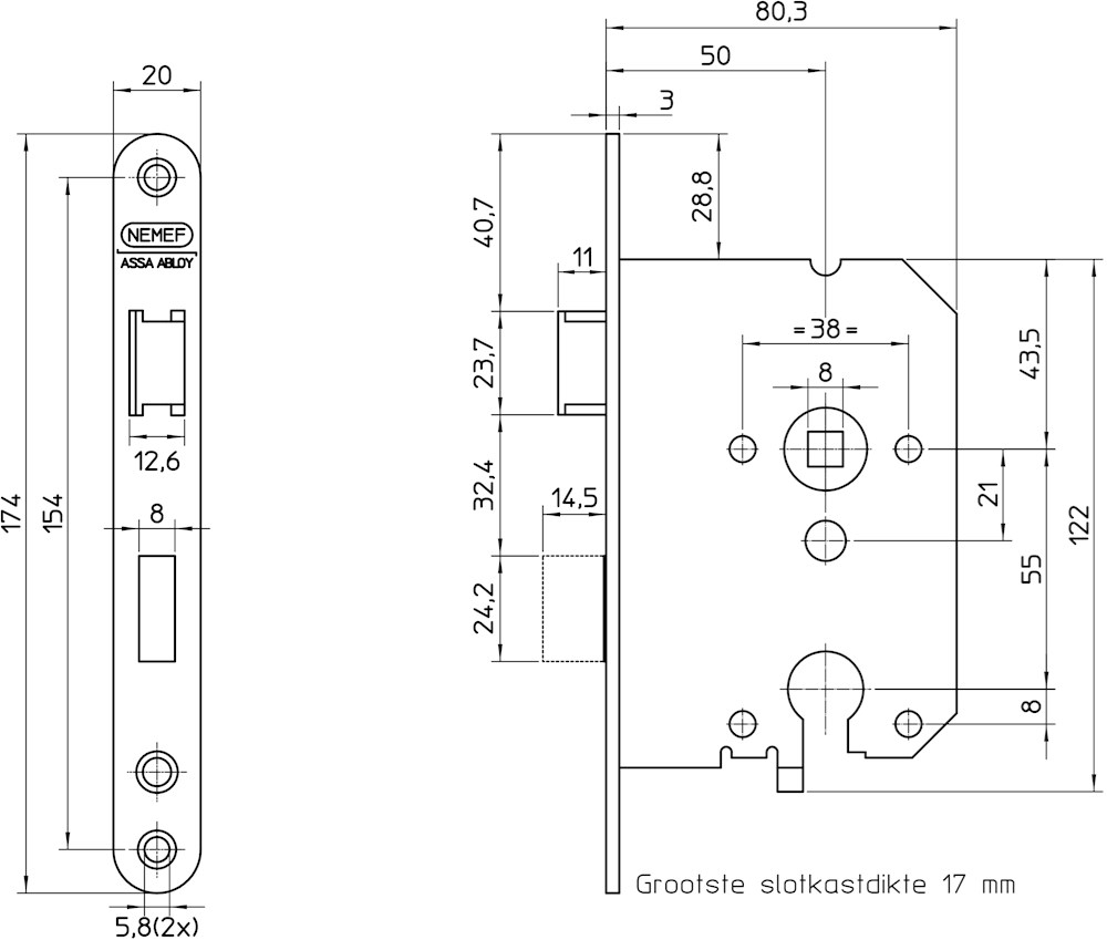 • Geschikt voor renovatietoepassingen in afsluitbare binnendeuren in de woningbouw. Standaard slotkast met afgeronde voorplaat.