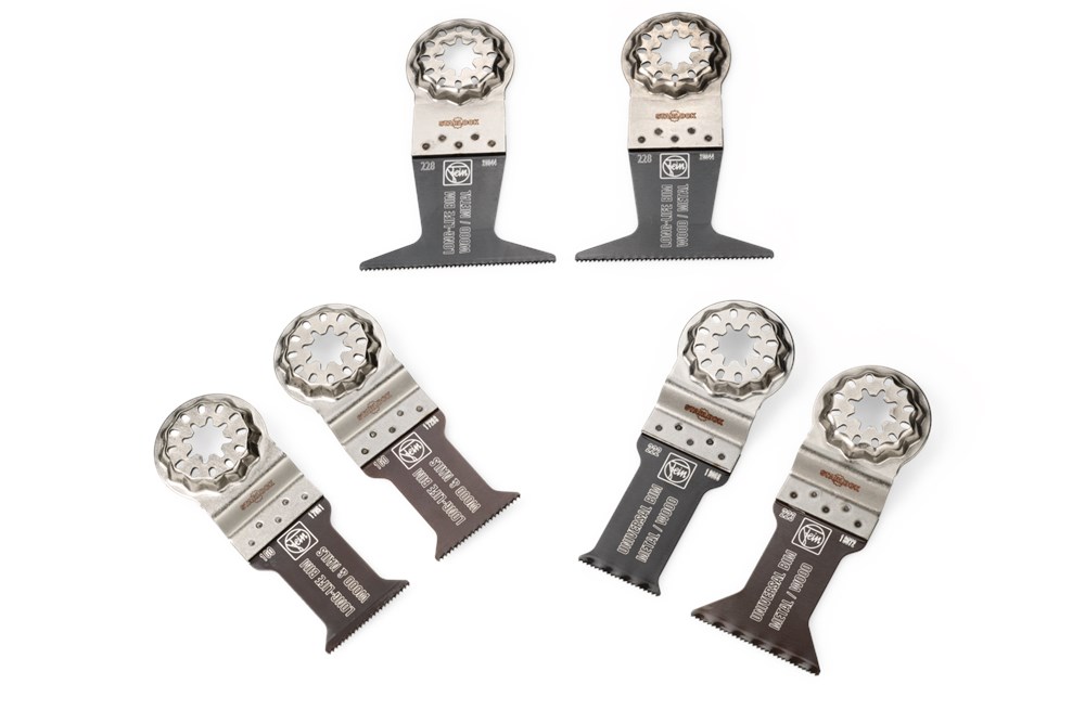 Als set met aantrekkelijk prijsvoordeel ten opzichte van losse aankoop. Inhoud: telkens 2 E-Cut Long-Life-zaagbladen (50 x 35 mm, 50 x 65 mm), telkens 1 E-Cut universeel zaagblad (55 x 28 mm, 55 x 44 mm).