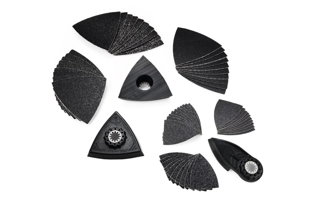 63-delige accessoireset voor het slijpen in hoeken en langs randen. Geschikt voor alle multitools van FEIN en alle andere gangbare multitools met Starlock-houder.