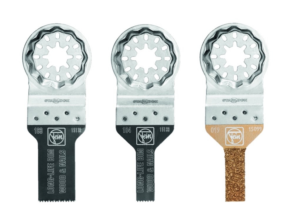 3 accessoires, ideaal voor kleinere uitsparingen en het werken in krappe ruimtes, bijv. voor diverse installatiewerkzaamheden, inbouw van schakelaars, modelbouw en nog veel meer. Geschikt voor alle multitools van FEIN en alle andere gangbare multitools met Starlock-houder.