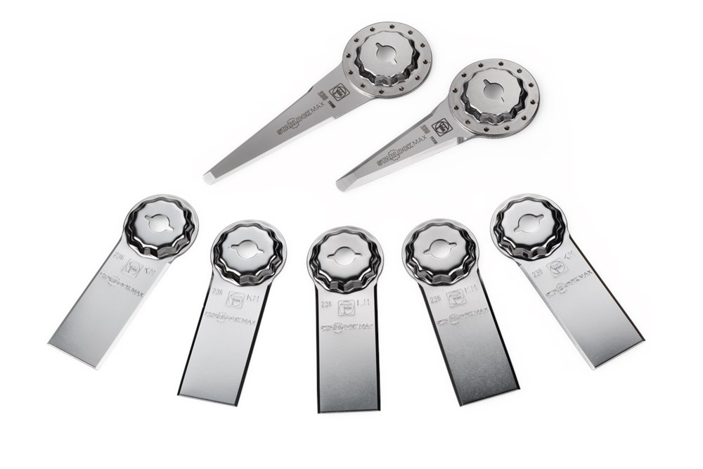 Professionele 7-delige messenset voor de professionele renovatie van dilatatievoegen tot 90 mm diep. Geschikt voor alle multitools van FEIN met StarlockMax-houder en alle andere gangbare multitools met StarlockMax-houder.