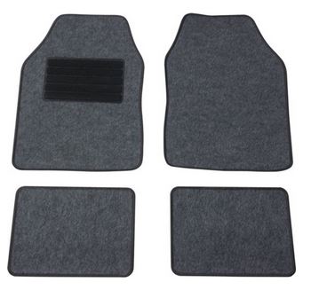 Een universele mattenset van kunststof compleet met 2- voor en 2 achtermatten.
