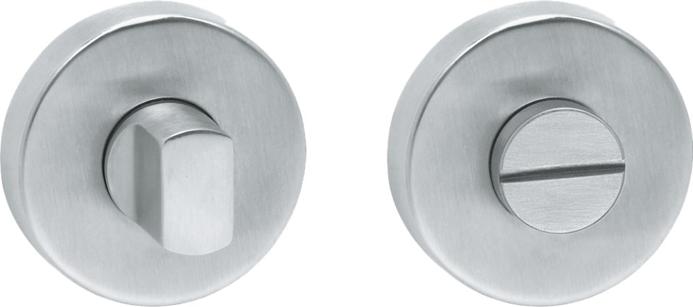 Rvs AISI 304 (A2), mat geborsteld. Rozet op kunststof onderconstructie.