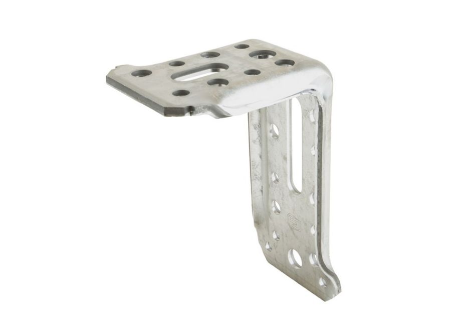 Zwaar hoekanker, extra versterkt met zijrillen. Uitgevoerd met een veelzijdig (slob)gatenpatroon. Uitermate geschikt voor de verankering van zware kozijnen.