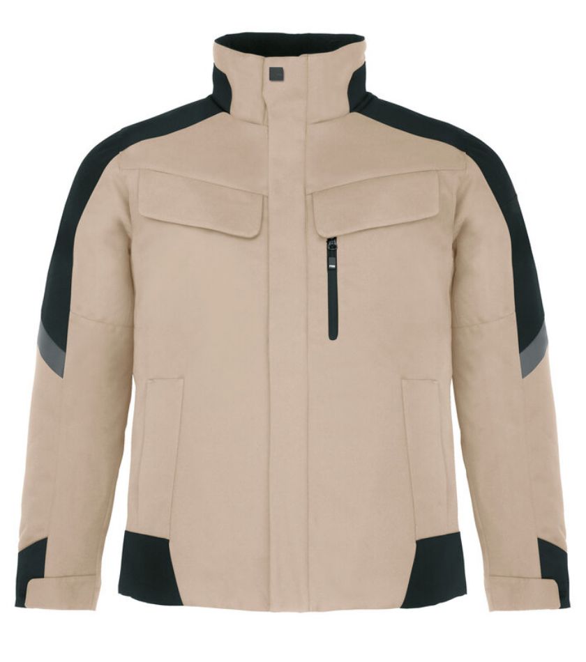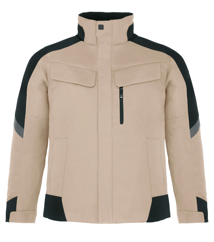 Robuust door een geweven stof 600D*600D, aangenaam warm door een wattering van 120g/m2, waterafstotend, ergonomisch pasvorm, binnenkraag van mikro-fleece, 4 pennenzakken op de arm, 4 afsluitbare voorzakken, 1 mobiel- en 1 ipad binnenzak, verstelbare manchetten tailleband, innovatieve FHB kraagsluiting, diverse praktische oplossingen voor makkelijk borduren.