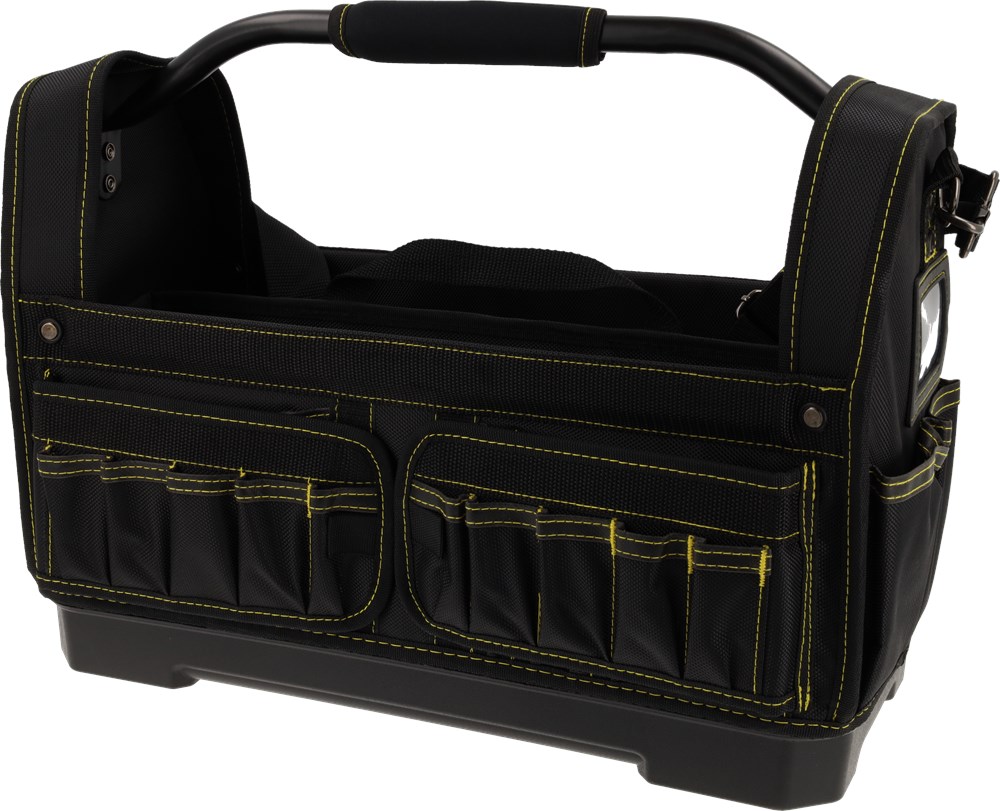 Gereedschapstas met schouderband en vast stalen tube handvat. 45cm.