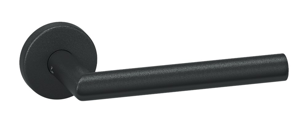 Model Tilburg (Haaks model deurkruk). Rvs AISI 304 (A2), zwart. Voorzien van kunststof onderrozet geveerd. Klasse 2.
