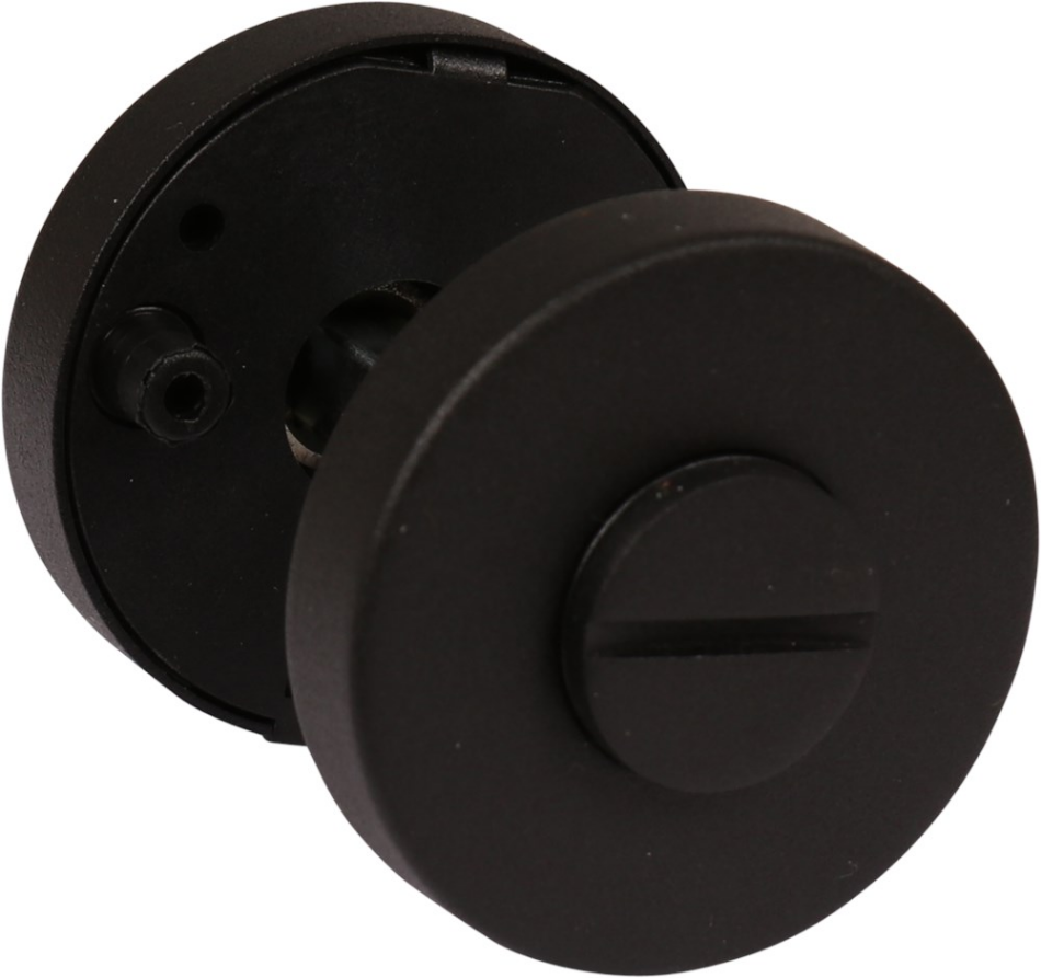 Rond rozet garnituur. Rvs AISI 304 (A2), zwart. Voorzien van kunststof onderrozet.