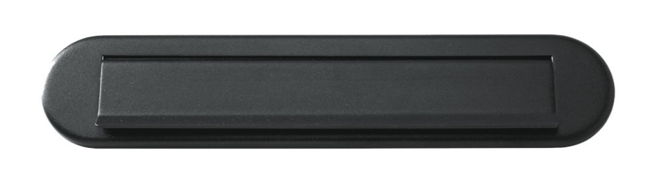 Ovaal model. Rvs AISI 316 (A4), mat zwart. Voorzien van veer. Geschikt voor horizontaal en verticaal gebruik. Afmeting 350x73x8,5 mm. Voldoet aan Post NL norm.