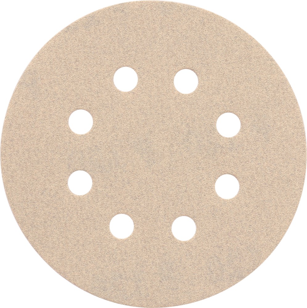 Type GLS 5, geschikt voor het schuren van schilderwerk, lak en plamuur. Na het schuren van staal, niet meer gebruiken op rvs, dit om roestvorming te voorkomen. Voorzien van klittenband aan de onderkant, voor snelhechtsystemen. Wit, 8 Gaten, 125 mm.