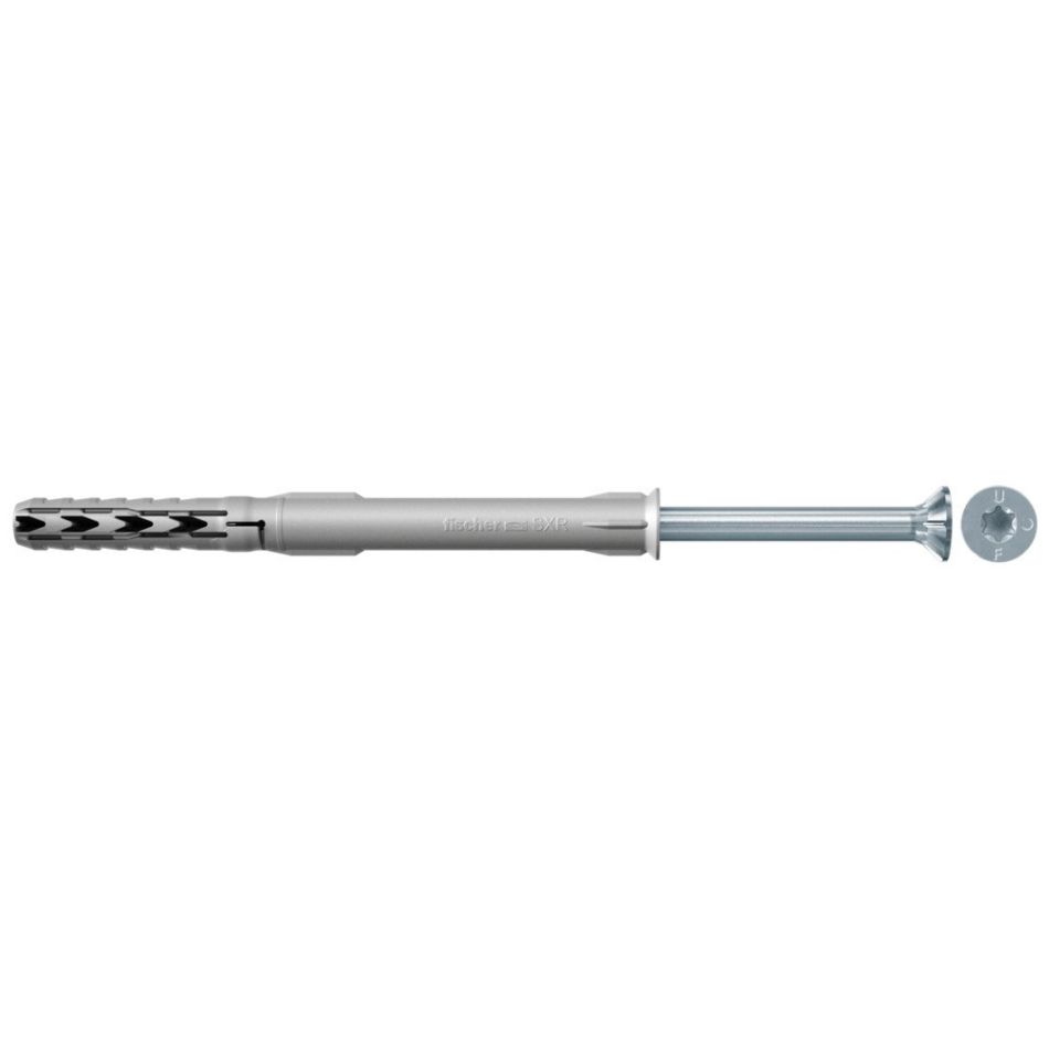 De fischer Constructieplug SXR-T is een plug van kwalitatief hoogwaardig nylon met voorgemonteerde fischer borgschroef met verzonken kop. Dankzij de bijzondere geometrie van de plug kan de SXR in massief materiaal en materialen zoals geperforeerde baksteen worden gebruikt. Door de geringe verankeringsdiepte van slechts 50 mm kan de constructieplug in het bijzonder bij meervoudige bevestigingen van niet-dragende systemen op zeer efficiënte wijze worden verwerkt. De fischer Constructieplug SXR-T is door de schroef met verzonken kop bijzonder geschikt voor de bevestiging van houtconstructies.