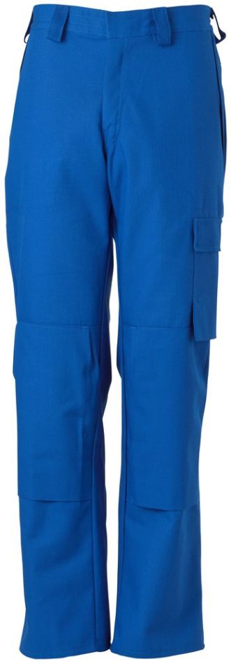Verdekte ritssluiting, 2 ingezette zijzakken met klep, achterzak met klep, duimstokzak, dijbeenzak met klep, kniezakken, elastiek in rug, pijpen met steldrukkers