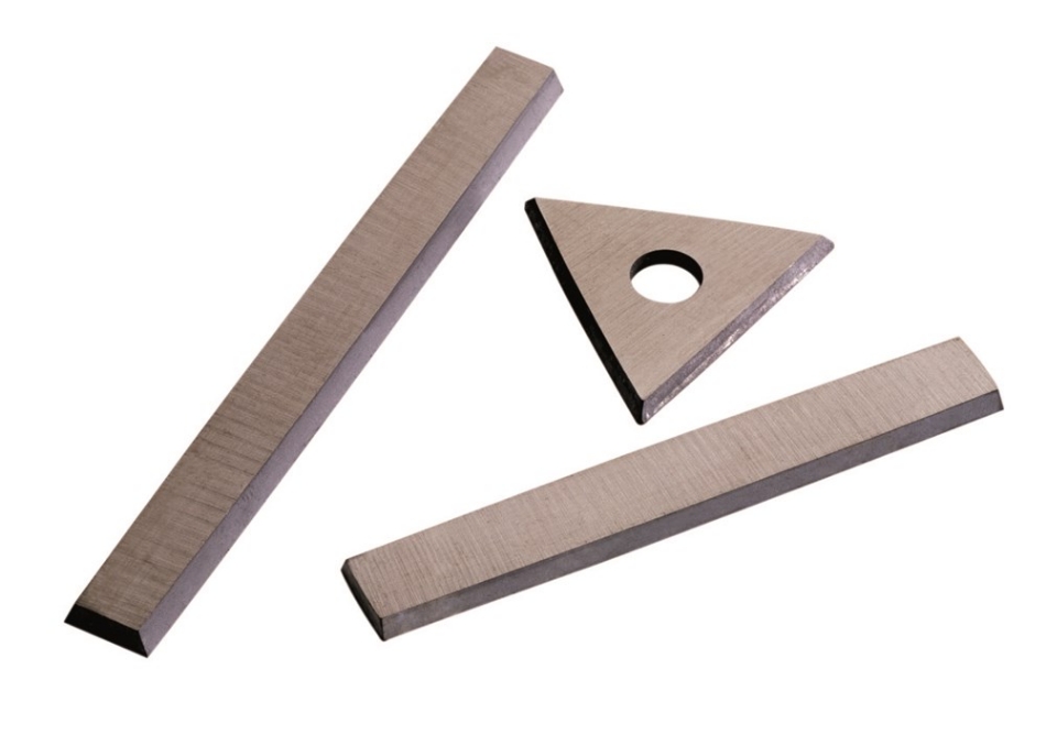 50 mm en 65 mm messen zijn dubbelzijdig te gebruiken, het driekante mes is aan 3 kanten te gebruiken