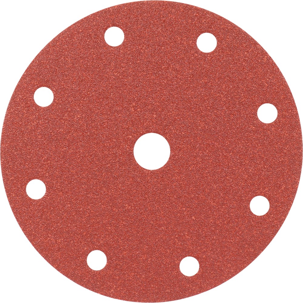 Geschikt voor het schuren van materialen zoals hout, staal en rvs. Na het schuren van staal, niet meer gebruiken op rvs, dit om roestvorming te voorkomen. Voorzien van klittenband aan de onderkant, voor snelhechtsystemen. Rood, 9 gaten en 150 mm.