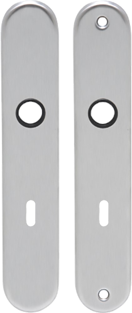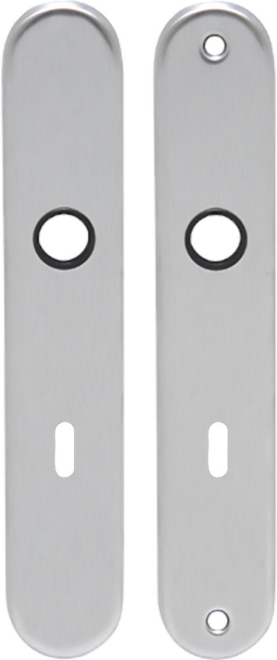 Ovaal model. Rvs AISI 304 (A2), mat geborsteld. Afmeting 225x40x8 mm. Levering per paar. Inclusief twee schroeven M4x50 mm.