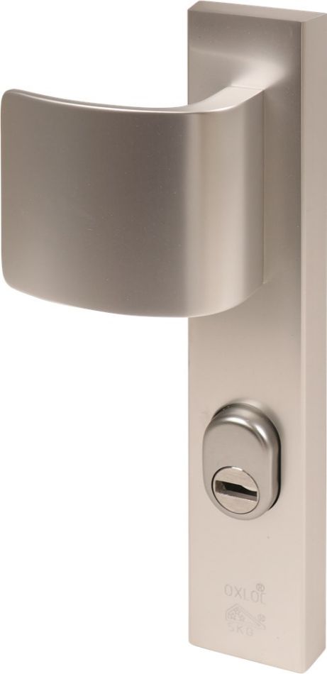 Rechthoekig model. Buitenschild voorzien van rvs kerntrekbeveiliging. Dikte buitenschild 15 mm en dikte binnenschild is 8 mm. Afmeting schild 251x50 mm. Met omkeerbare deurduwer 90x80 mm en kruk. Met drie rvs metaalschroeven M6x70 mm. Inclusief wisselstift.