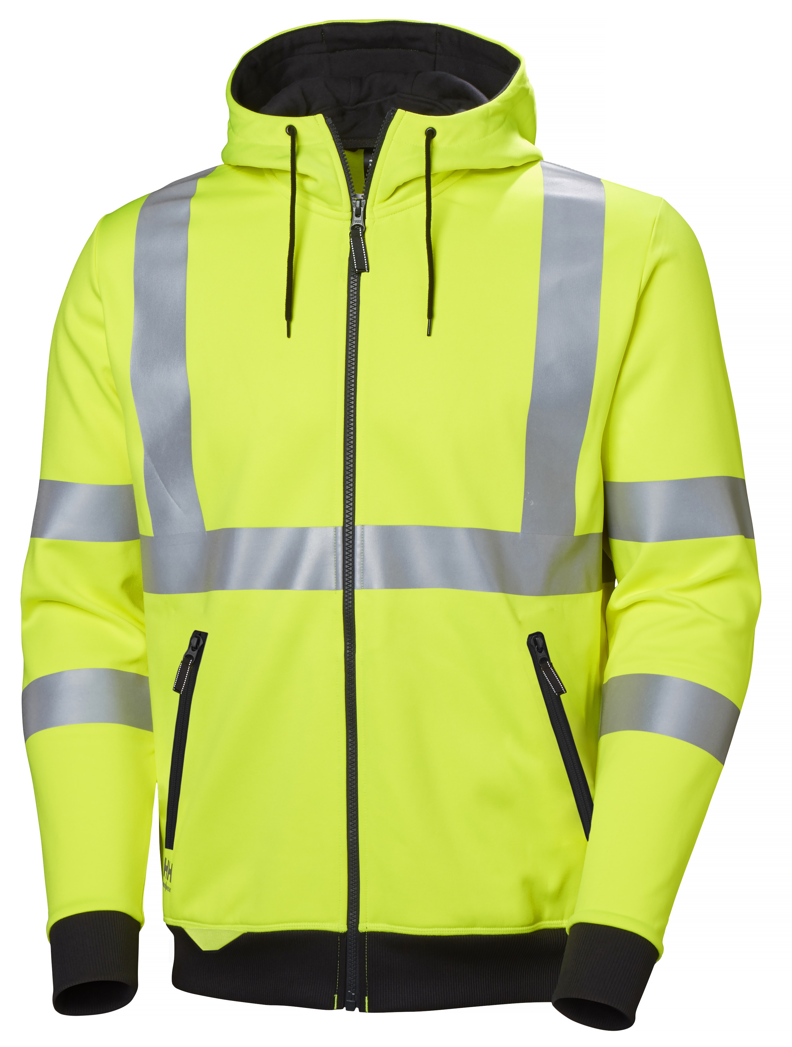 EN ISO 20471 Cl 3 (XS=Cl 2). YKK®-ritssluiting. Gecentreerde YKK® Vislon-ritssluiting aan voorzijde. Reflectoren rondom het lichaam en de mouwen. Twee handzakken. Capuchon met trekkoord. Lus voor ID-kaart.