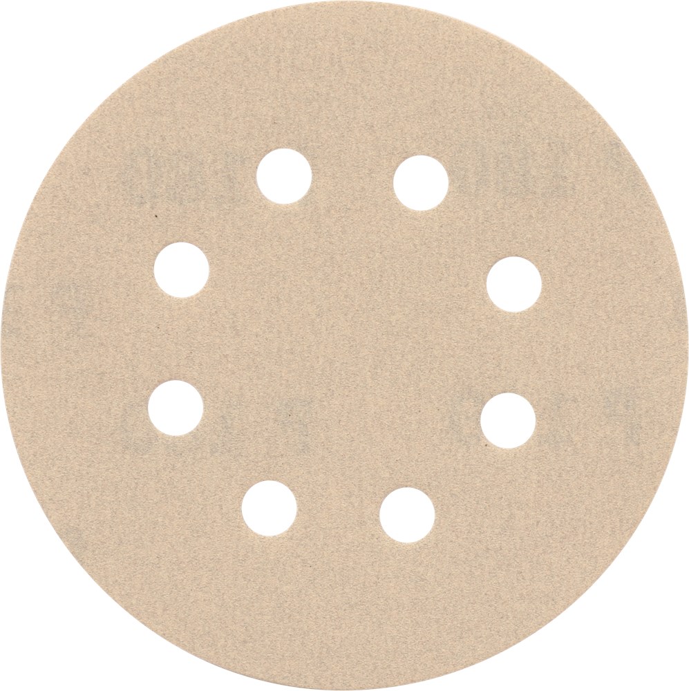 Type GLS 5, geschikt voor het schuren van schilderwerk, lak en plamuur. Na het schuren van staal, niet meer gebruiken op rvs, dit om roestvorming te voorkomen. Voorzien van klittenband aan de onderkant, voor snelhechtsystemen. Wit, 8 Gaten, 125 mm.
