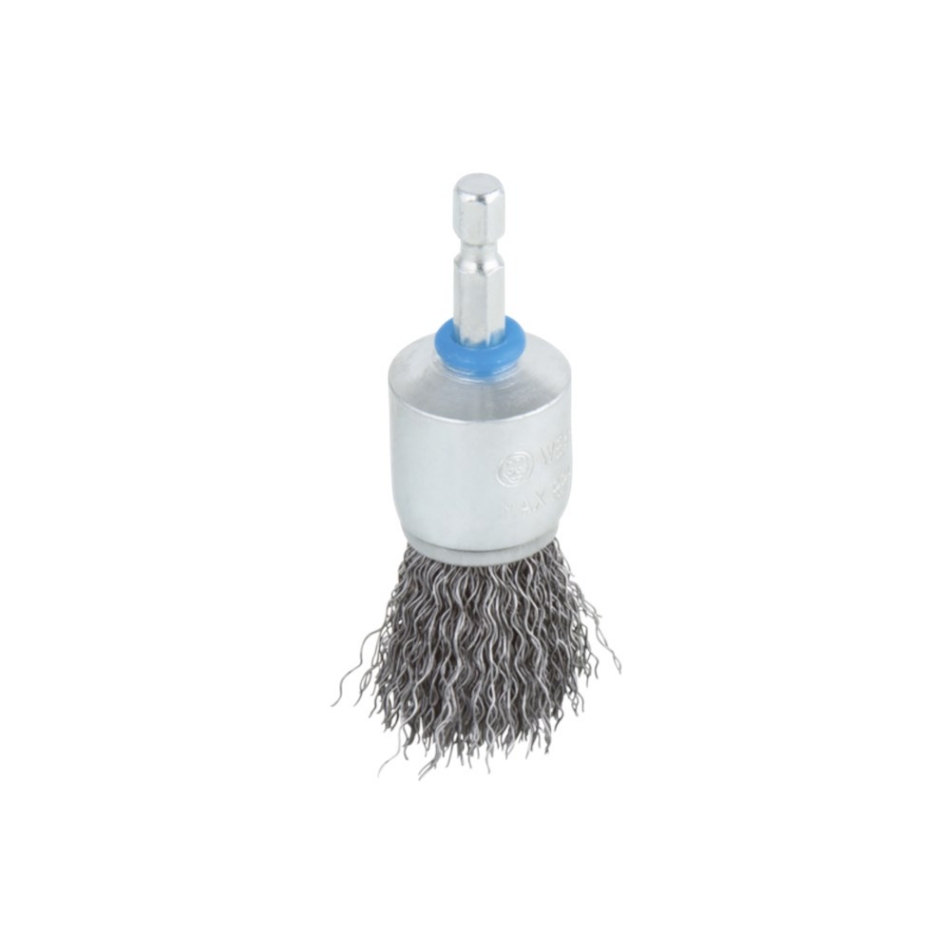 Staaldraad-penseelborstel. Ć 25 mm. Ronde schacht 6 mm. Lengte draad 25 mm. Diameter draad 0,3 mm. Staaldraad. Gegolfd. Toerental max. 4.500 RPM. Rechtsdraaiend. Voor ontroesten en reinigen. Ideaal voor binnenbuizen of grotere boringen. Goed geschikt Metaal, Plaat. Voorwaardelijk geschikt Non-ferrometaal, hout, Steen .