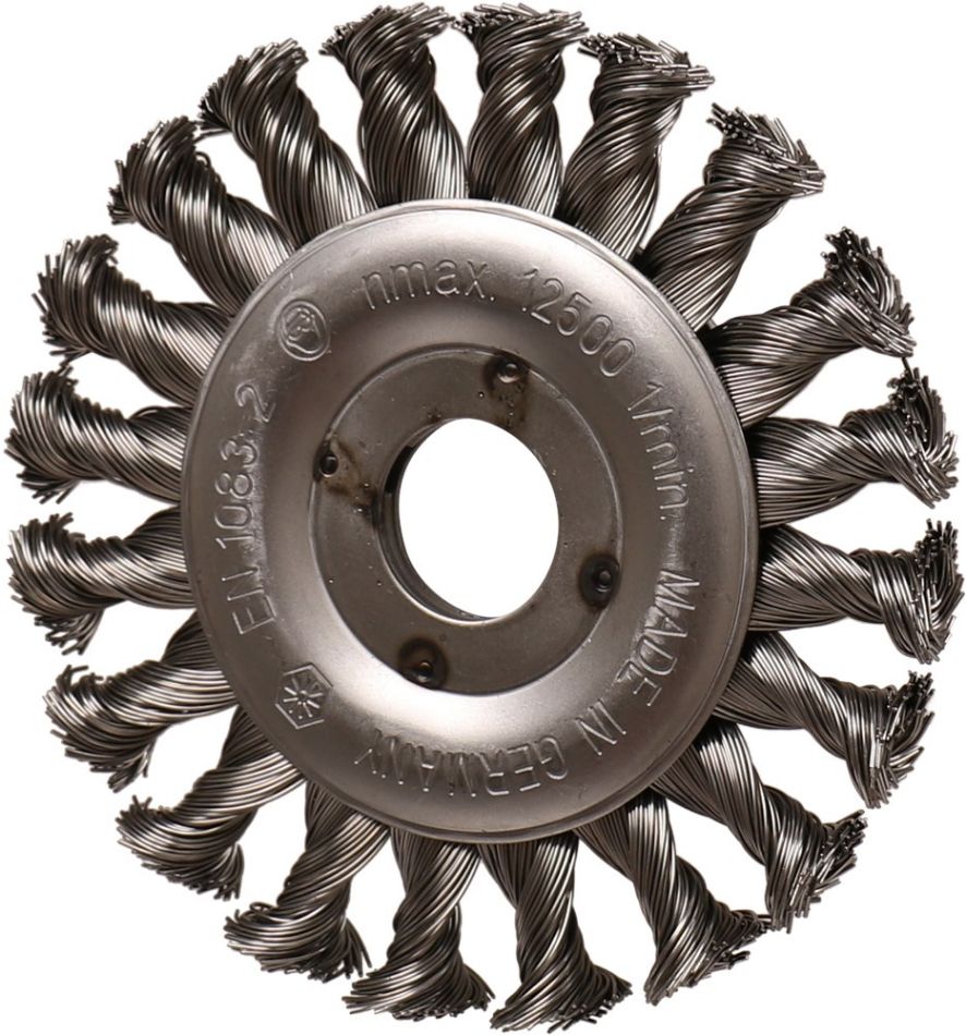 Voorzien van getordeerde bundels voor het reinigen van lasnaden. Asgat 22,2 mm. Geschikt voor haakse slijper.