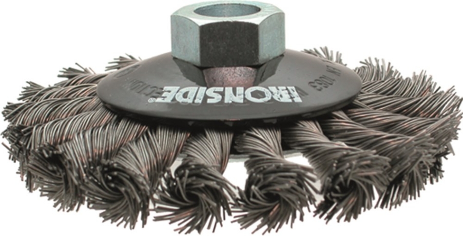 Getordeerd staaldraad, draaddikte 0,5 mm en breedte 13 mm. Asgat M14. Geschikt voor haakse slijper.