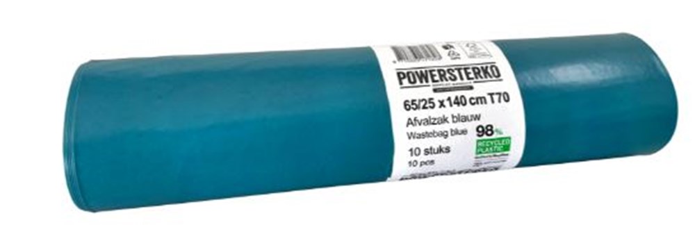 PowerSterko recy afvalzak blauw T70 65/25x140cm 240 Liter (10 per rol)