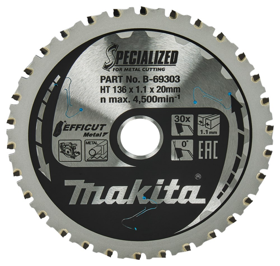 Makita heeft een uitgebreid assortiment cirkelzaagbladen voor de diverse machines. Kies een zaagblad voor het te zagen materiaal en passend op de te gebruiken machine; er zijn verschillende kwaliteiten, waarbij de Makita Efficut zaagbladen tot het top segment behoren. Voor meer informatie omtrent cirkelzaagbladen zie het Makita kenniscentrum: https://www.makita.nl/kenniscentrum/cirkelzaagbladen-en-de-technieken-erachter.html Makita Efficut cirkelzaagblad voor staal. Efficiƫnt en zuiver zagen door het dunne standblad en de unieke tandvorm.