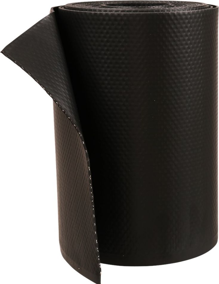 EPDM met aluminium strekmetaal. Veroorzaakt geen reactie met cement en mortel. Bestand tegen UV, zure regen en andere luchtverontreiniging. Geschikt voor het verwerken bij onder andere waterkering in de gevel, onderdorpels van kozijnen, hellende daken, rondom dakkapellen, schoorstenen en als alternatief voor zinken kilgoot. Milieuvriendelijk en minder diefstalgevoelig. Op rol van 10 m.