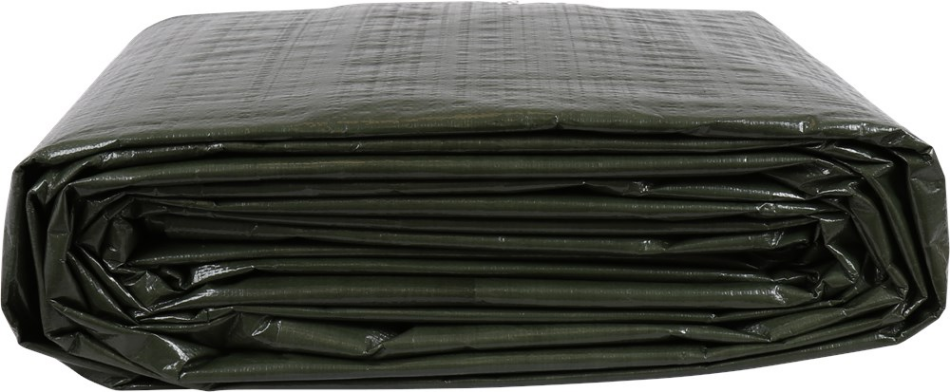Lagedichtheid polyethyleen, geweven en gecoat aan beide zijden. Voorzien van omzoomde rand, met ogen. Kleur blauwgroen, 150 g/m².