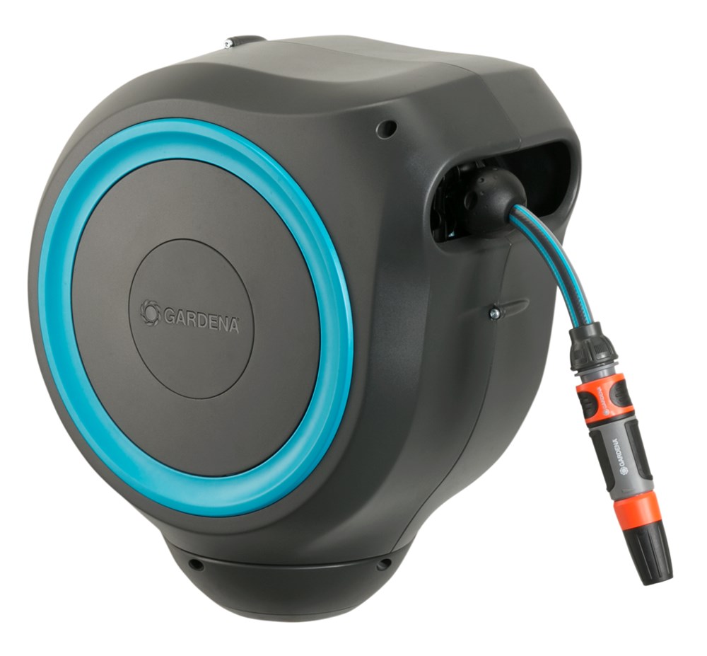 Geen vermoeiend oprollen, niet meer bukken en uw handen blijven schoon dankzij de wandslangenbox RollUp S. Dit maakt bewateren moeiteloos en comfortabel. De compacte slangenbox is klaar voor onmiddellijk gebruik en kan eenvoudig aan elke muur worden bevestigd en met de flexibele aansluitslang op de waterkraan worden aangesloten. Door de manoeuvreerbaarheid van de box op de muurbeugel en de waterslang van 15 meter hebt u maximale bewegingsvrijheid in de tuin: de box kan meer dan 180 graden worden gedraaid en voorkomt daardoor bovendien dat de slang knikt en in de war raakt. Als u de tuinslang wilt gebruiken, trekt u deze moeiteloos naar buiten en dankzij de bijzonder korte vergrendelingspunten wordt de slang automatisch vergrendeld op de plek waar u staat. Na gebruik wordt de vergrendeling ontgrendeld door licht aan het uiteinde van de slang te trekken. De hoogwaardige slang rolt automatisch en gelijkmatig op dankzij een ingebouwde stalen veer. De innovatieve RollControl-technologie zorgt voor veilig en gecontroleerd oprollen van de slang. Onder de muurbeugel bevindt zich ook een praktische opbergmogelijkheid voor extra GARDENA slangopzetstukken. De compacte slangenbox is gemaakt van hoogwaardige materialen en is bestand tegen UV en vorst. Dit betekent dat de box het hele jaar door gebruiksklaar is en niet beschadigd raakt door uiteenlopende weersomstandigheden. De antidiefstalbeveiliging voorkomt dat de box gemakkelijk van de muur kan worden gehaald. De wandslangenbox wordt geleverd met een muurbeugel, een flexibele aansluitslang, alle benodigde Original GARDENA System onderdelen en montageonderdelen en een mondstuk met twee verschillende sproeiopties. GARDENA geeft een garantie van vijf jaar op dit kwaliteitsproduct.