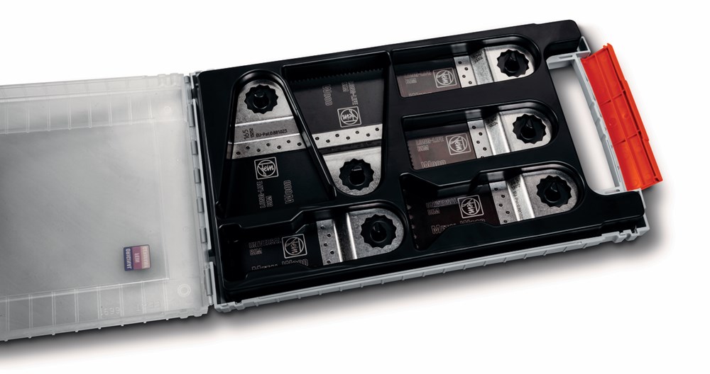 6 verschillende E-Cut zaagbladen t.b.v. SuperCut in een handige opbergkoffer - 1x universal 147, 1x universal 148, 2x Long-Life 164 en 2x Long-Life 165