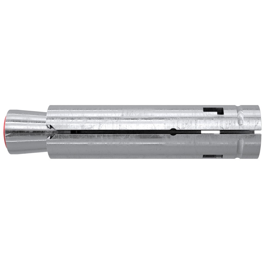 Het fischer Hulsanker TA M is een inslaganker met binnendraad van gegalvaniseerd staal voor de voorsteekmontage. Bij de montage wordt de conus in de spreidhuls getrokken en spant deze tegen de wand van het boorgat. De kunststof dop beschermt de schroefdraad tegen vervuiling. Zo blijft deze altijd goed beweegbaar. Het hulsanker is zeer geschikt voor de bevestiging van valbeveiligingen, installaties en machines in ongescheurd beton.