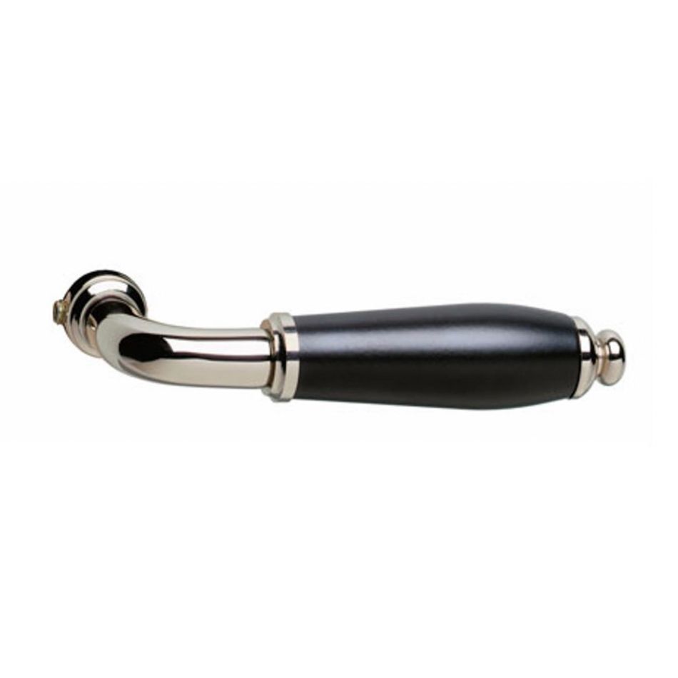 Deurkruk Courgette heeft een klassieke vormgeving in de kleurcombinatie nikkel en zwart. Deze nikkel finish wordt naderhand gepolijst waardoor de kruk een glanzend uiterlijk krijgt. Deze kruk kan eindeloos gecombineerd worden met losse rozetten of schilden.