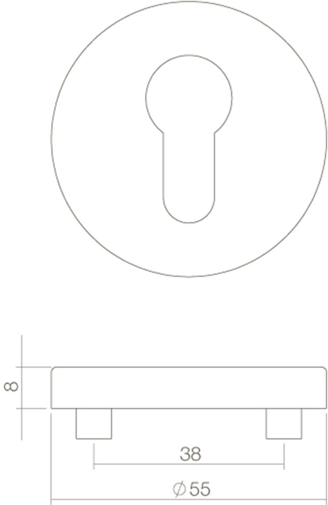 Deze ronde rozet met profielcilindergat is geproduceerd uit roestvast staal met een diameter van Ø 55mm en is naderhand geborsteld, waardoor het een matte uitstraling krijgt. Door het gebruik van rvs heeft dit product een lange levensduur. Deze rozet is voorzien van nokken, waardoor hij beter op zijn plek wordt gehouden. Wordt geleverd per stuk.
