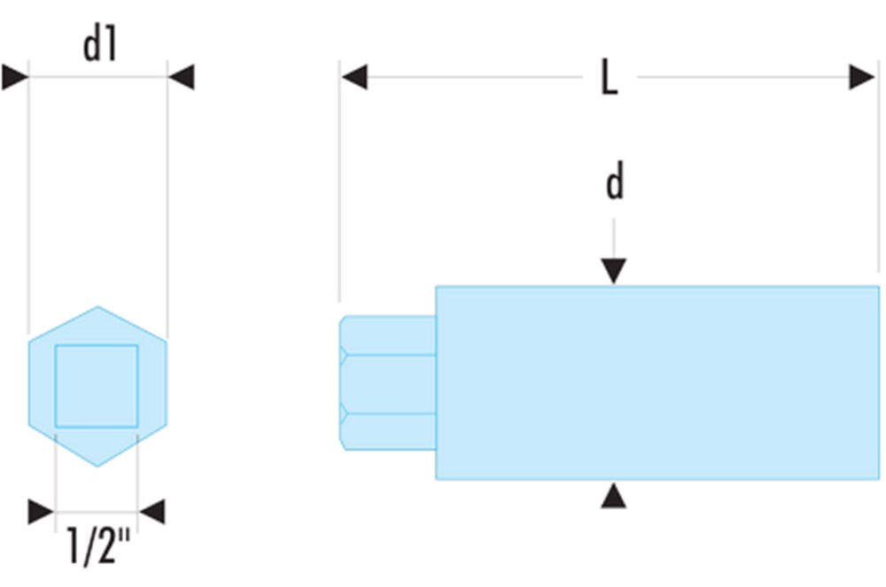 Aandrijving met de zeskantmoer of met behulp van een ratel 1/2" - 12,7 mm. Behalve het model 287B.16, dat aan de zijkant is geperforeerd om met een pen te werken.