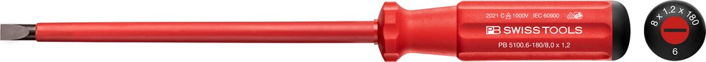 Classic VDE schroevendraaier voor gleufkop-schroeven. Volledig geïsoleerd tot 1000 V AC / 1500 V DC volgens IEC/EN 60900. VDE gekeurd, veilig werken tot 1000 V AC / 1500 V DC. Slank hecht, plaatsbesparend en ideaal voor fijn afstelwerk.