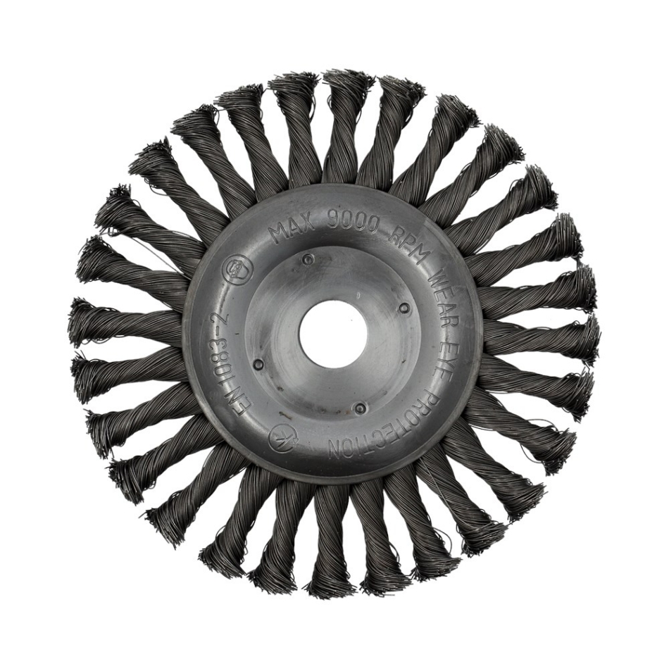 Rondborstels voor de haakse slijper. De Industrial Line met getordeerd staaldraad is geschikt voor het ontroesten en ontbramen van laag- en ongelegeerde staalsoorten.